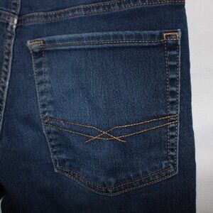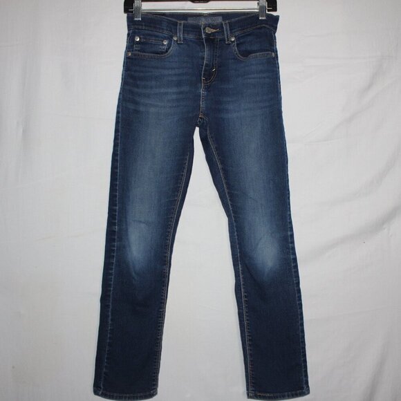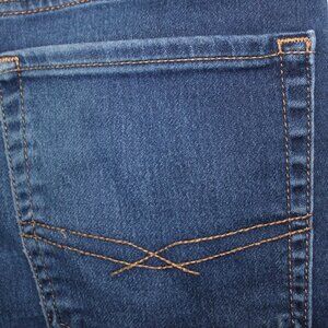 A preowned pair of Signature by Levi Strauss slim straight jeans, designed for a comfortable stretch fit with a classic blue wash. Featuring a versatile everyday style, these jeans offer a flattering slim silhouette and timeless denim appeal.