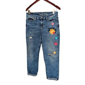 Signature Levi Strauss Womens Size 6 Jeans Modern Slim Cuffed Floral Embroidered