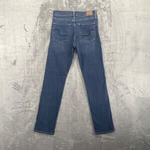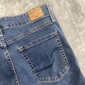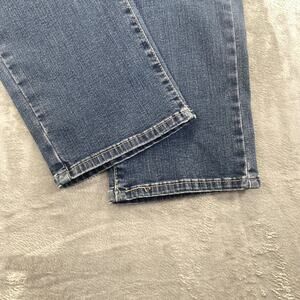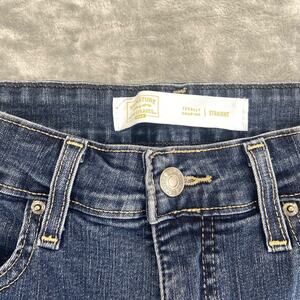 Signature Levi Strauss Women's Totally Shaping Straight Jeans in a dark wash. Size 8M with a 29-inch waist and 32-inch inseam.