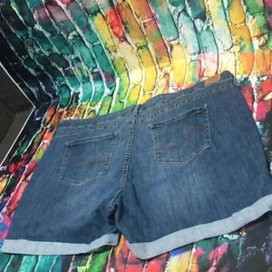 Signature Levi Strauss plus size jean shorts slightly distressed on front