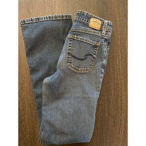 Signature Levi's At Waist Bootcut Jeans-5 pocket, zip & button fly, stretch, size 8L, whiskering, medium wash. Good Condition.