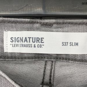 Signature Levis S37 Slim Women Gray Jeans Size 29 x 31 Raw Hem Stretch EUC