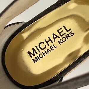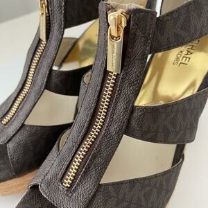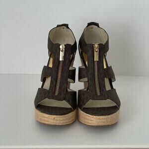 Signature Logo Michael Michael Kors Leather Brown Wedge Espadrilles Size 9.5