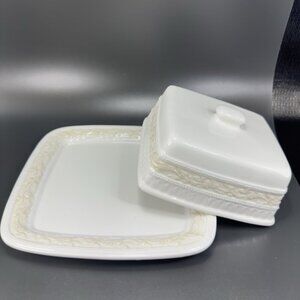 Signature Lourdes Large Square Porcelain Butter Dish Container Cheese Dish VTG