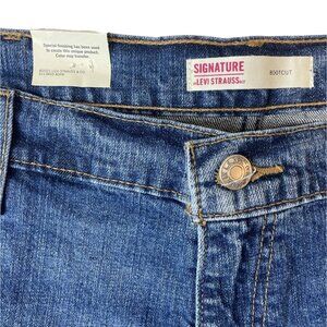 Experience the perfect blend of comfort and style with the Signature Men's Blue Bootcut Jeans Sz 40x30. Designed by Levi Strauss, these denim pants are ideal for any casual occasion and promise a relaxed fit with their bootcut flex design. They are brand new with tags. Please refer to the pictures for details. Measurements are shown in the last image.