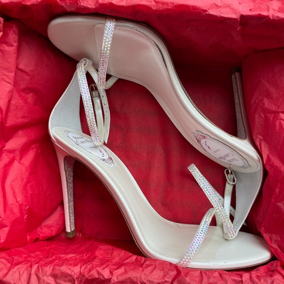 Step into luxury with these stunning René Caovilla crystal-embellished heels — a masterpiece of Italian craftsmanship and timeless glamour. The sparkling crystal ankle-wrap design adds the perfect touch of sophistication, making them ideal for weddings, special events, or upscale nights out.