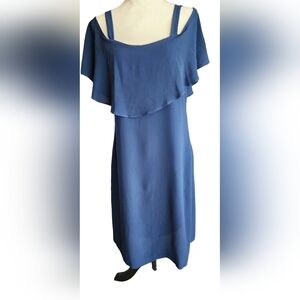 Signature Robbie Bee Cold Shoulder Midi Dress Women's 6 Navy Blue