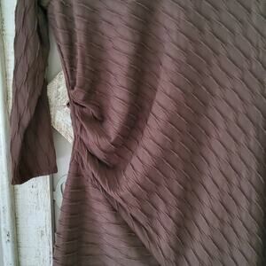 Brown long sleeve asymmetric side ruched textured knit midi a-line dress by Signature by Robbie Bee in a size medium or large.