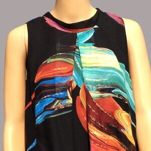 Signature Robbie Bee S12 Dress Black Sleeveless Colorful Abstract Artsy Fairy
