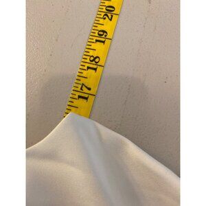 This elegant dress combines a sophisticated white bodice with a navy layered skirt. The embellished neckline adds a touch of glamour, suitable for formal events. Its polyester blend ensures comfort and durability throughout the day.