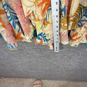 Signature Skirt Women 20W Plus Beige Floral A-Line Midi Ruffle Lined Pull On