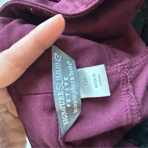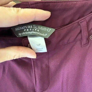 Signature Slimming Christopher and Banks Pants 12 Petite Burgundy Stretch