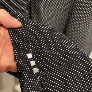 Signature Slimming by CJ Banks Black with mini polka-dot Capri pant. Front pockets. Cute embellishments at the hem.