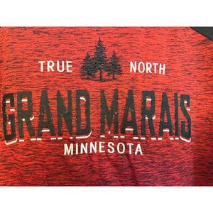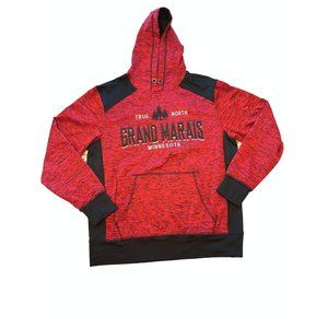 A stylish maroon hoodie from Gold Country True North, inspired by Grand Marias, Minnesota. This signature sportswear concept piece is a size medium and perfect for casual wear.