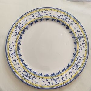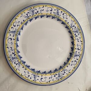 Signature Stoneware Japan 12 In Round Blue Yellow White Serving Plate Platter