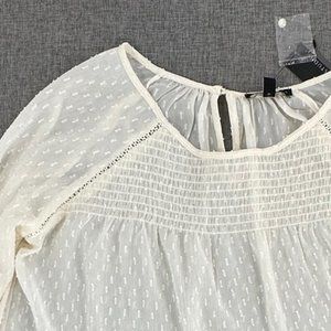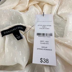 Signature Studio Blouse Long Sleeve Top Sheer Lightweight Large Ivory Loose Fit