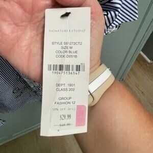 Signature Studio Blue Striped Floral Print Lightweight Dress Size Medium NEW