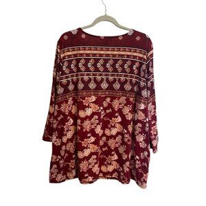Signature Studio Burgundy Top Floral Velvet Trim 3/4 Sleeve Boho Peasant Size 2X