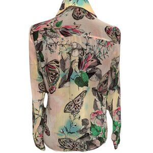 🦋 Signature Studio Butterfly Pattern Sheer Blouse, Pre-Owned, Size S 🌸
