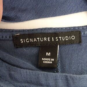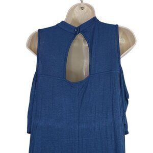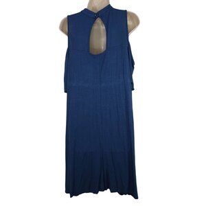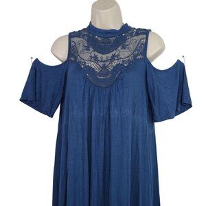 Signature Studio Cold Shoulder Navy Blue Shift Dress Women Size M High Neck Lace