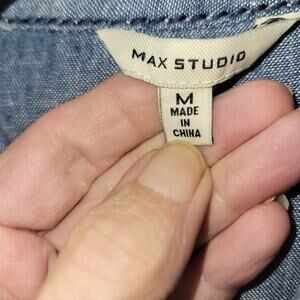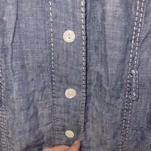 Signature Studio Medium Blue Chambray Short Sleeve Dress Lace Up Pockets