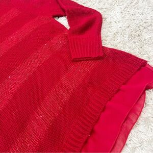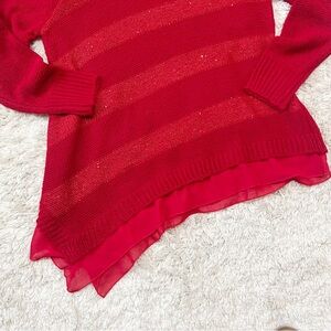 Signature Studio NWT Women Sweater Red Sparkle Asymmetrical Hem