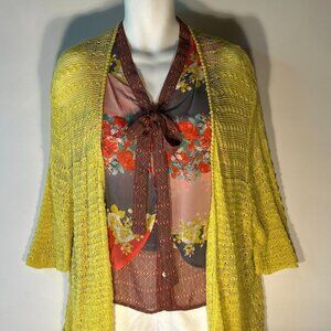 Signature Studio SZ M Ivory Colorful Bow Button Front Top Romantic Casual Dressy