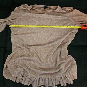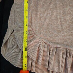 Signature Studio Sz L Tan/Lt Brown, soft, lightweight tunic sweater, long sleeve, scoop neck, flattering fit with ruffle flounce hem, Like new excellent condition!