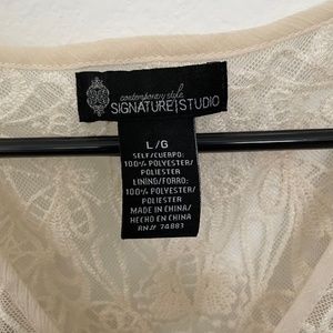 Signature Studio Women's Sleeveless Sheer Lacy Top With Cami Cream LG