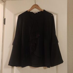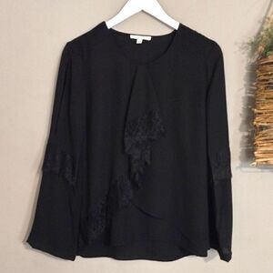 Signature Studio Women's Small Lace Solid Black Long Sleeve Blouse Top