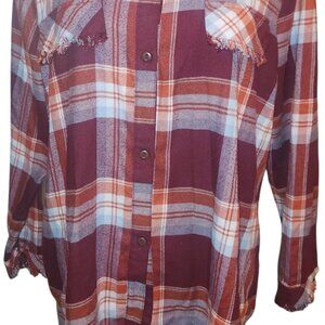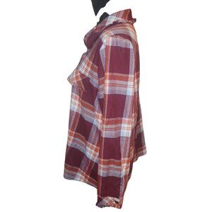 Signature Studios Burgundy Plaid Button Down Long Sleeve Flannel Shirt Size L