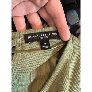 Signature Studios Green Blouse - Plus Size 1x Burn Out Graphic Criss Cross Back