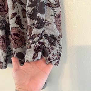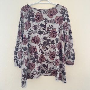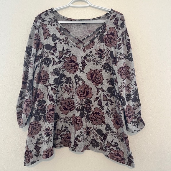 Signature Studios XL Crisscross V-neck 3/4 Sleeve Knit Top Gray Pink Floral