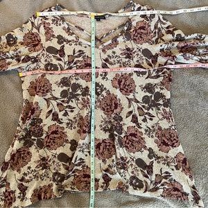 Signature Studios XL Crisscross V-neck 3/4 Sleeve Knit Top Gray Pink Roses