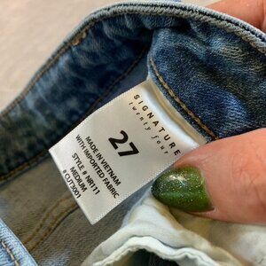 Signature Twenty Four Womens 27 Denim Jeans Blue Baggy Straight Leg Distressed. No holes that are unintentional. No stains.