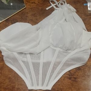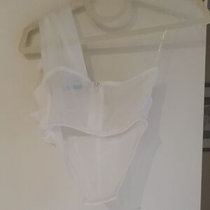 Experience the elegance of the Signature White Crop Top, crafted with delicate mesh for a sophisticated look. This top features a classic design that combines style and comfort, making it perfect for everyday wear. Its pure white color adds a touch of timeless charm to any outfit. Corset style with one shoulder gathered.