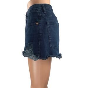 Signature Women's Blue Dark Wash Cut Off High Rise Denim Jean Shorts Size M