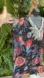 This is a pretty bright florals on a black background, sheer polyester chiffon fabric. The neckline has been beaded with tiny seed, beads and sequins and a floral pattern with a little beaded tassel at the front. Euc