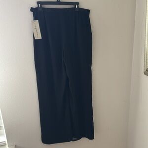 Signature black dressy/party pants satin elastic waist sides wide leg sz 14 new