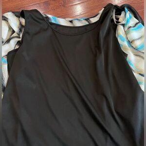 Signature by Larry Levine Black mocha and aqua wrap and tank combo top size 2X