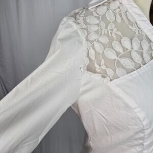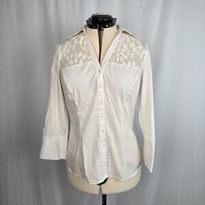 Signature by Larry Levine Button Down Blouse Women's L White Lace Accent