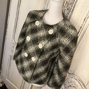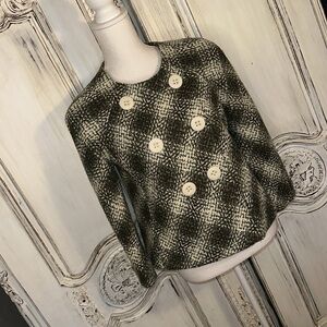 Signature by Larry Levine Earth Tones Plaid Tweed Double Breasted Cropped Jacket