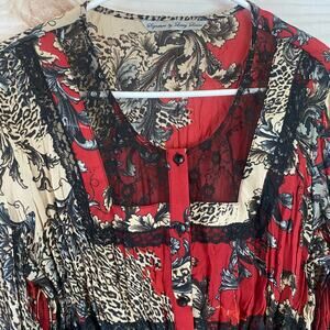 Signature by Larry Levine Red Lace Neckline Size Large