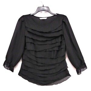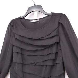 Signature by Larry Levine Shirt Womens Size S Black Ruffle Front Side Zip Blouse