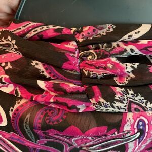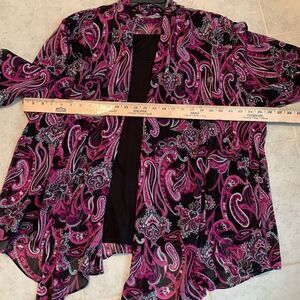 Signature by Larry Levine woman Size 3X kimono like top with built-in black tank. Purples and black color. Beautiful true to size piece. Like new condition & smoke free/pet free home. See photos for complete description/details.