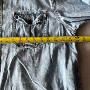 This casual button down shirt from Signature by Levi Strauss features a relaxed fit in a soft blue hue, perfect for everyday wear. Its classic design and comfortable fabric make it a versatile addition to any wardrobe. Discolored areas on front. Condition fair. sku095