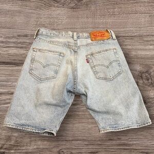 These blue jean shorts from Signature by Levi Strauss feature a vintage-inspired distressed look, crafted from rigid denim for a classic fit. The light wash adds a touch of retro charm, while the raw hem offers a laid-back, casual style.