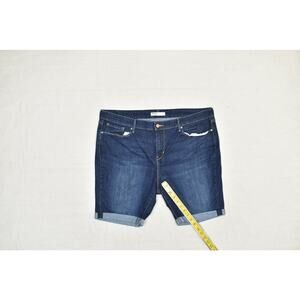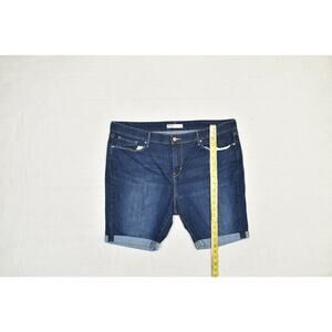 These are pre-owned Signature by Levi Strauss & Co. Bermuda shorts for women. The shorts are a plus size 22. They are made from a comfortable stretch denim blend of 70% cotton, 29% polyester, and 1% elastane, and feature the