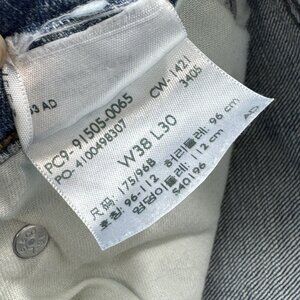 Size: 38x30 but measures 1 inch bigger in waist, please refer to actual measurements below: