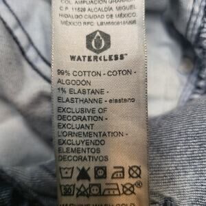 Features: WaterLess production, zip fly with button closure, 5-pocket styling, belt loops, metal rivets.